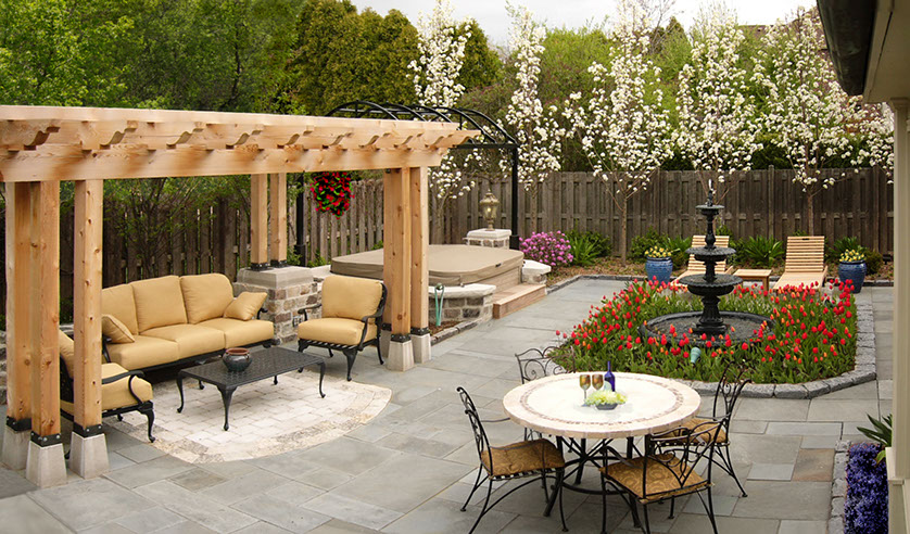 Hardscape provides the framework of the landscape, creates spatial composition of outdoor rooms and visually and functionally ties together the house to the outdoors.