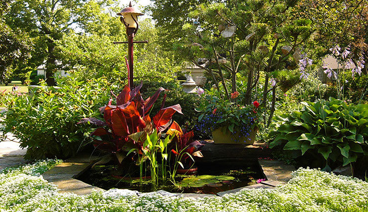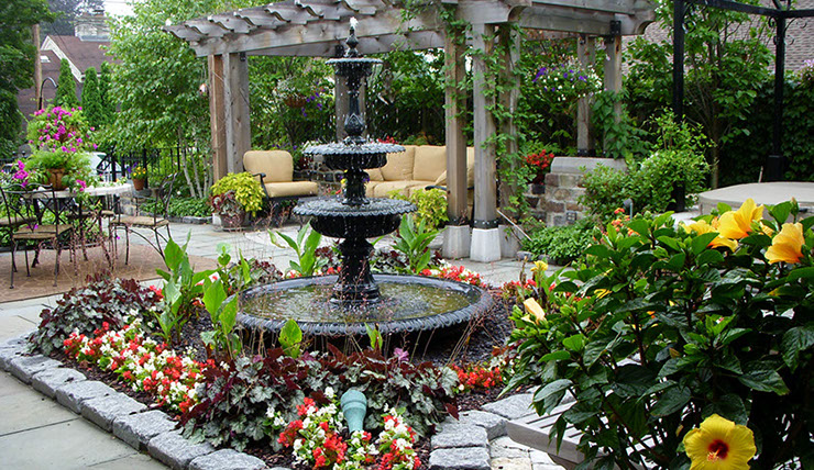 The trickling sounds of water can provide a peaceful feeling for your outdoor room and the refection of still water can help make a small space seem larger. Water features can provide a focal point, such as a water fountain, or can serve as a relaxing, contemplating area such as a pond or a pool.
